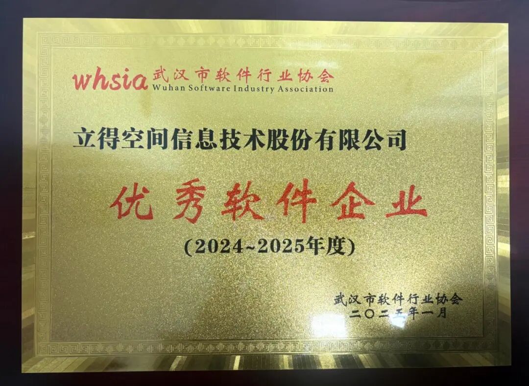 2025年1月16日,武汉市软件产业年会暨协会第五届五次会员代表大会隆重召开。立得空间作为理事单位应邀出席,凭借在技术创新与软件服务领域的杰出表现,荣获2024-2025年度“优秀软件企业”称号,并成功入选湖北省信息技术应用创新产业图谱。