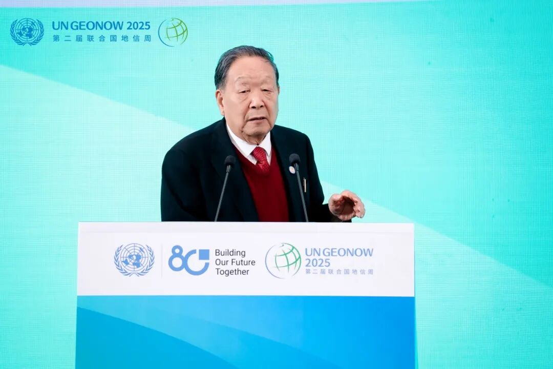 立得空间创始人、首席科学家李德仁院士题为“Spatio-temporal Intelligence for SDG”(意为:时空智能赋能联合国可持续发展目标),深入阐述时空智能体系从PNT(定位、导航、授时)到PNTRC(定位、导航、授时、遥感、通信)通导遥一体化系统的关键跨越,并深入探讨了时空智能技术如何具体助力实现联合国可持续发展目标。